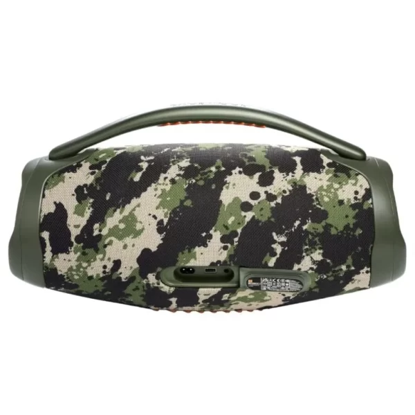 یکی از قابلیتهای بسیار مهمی که در بلندگوی قابل حمل JBL Boombox 3 وجود دارد، ویژگی شارژ معکوس آن است. این دستگاه میتواند بهعنوان یک پاوربانک نیز عمل کند. باتری که در آن بهکاررفته علاوه بر تأمین توان مورد نیاز جهت پخش موسیقی، گجتهای هوشمند و موبایل را نیز شارژ میکند. توان شارژ آن معادل 10 وات بوده و با استفاده از پورت USB-A قابل استفاده خواهد بود. با بهره گیری از این ویژگی دیگر نیازی نیست نگران تمام شدن شارژ گوشی خود هنگام مسافرتهای طولانی مدت یا کمپینگ باشید.